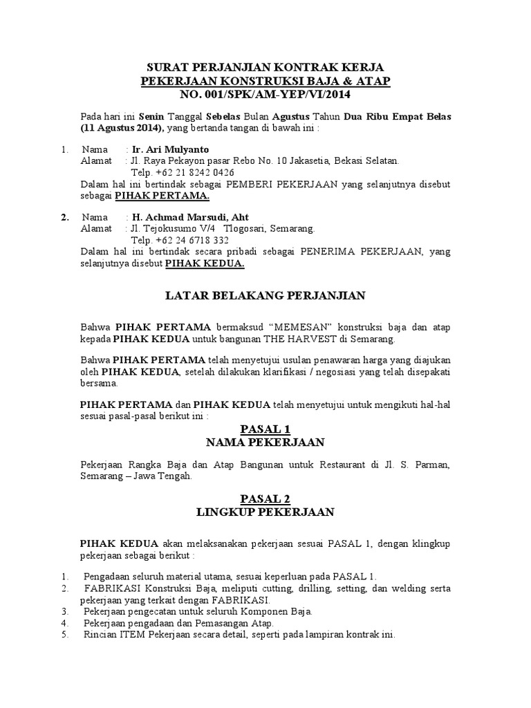 Isi Surat Perjanjian Kontrak Kerja Proyek Teknologi
